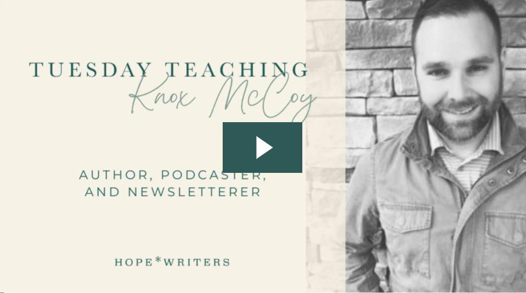 This first watch is a nice thing Hope Writers did for me where they gave me a link to pass along to you all where you can watch an interview I did with the INCOMPARABLE Emily Freeman. We talk about writing, publishing, podcasting, and ALL the things and if you are at all interested in any of it, I urge you to watch/listen.